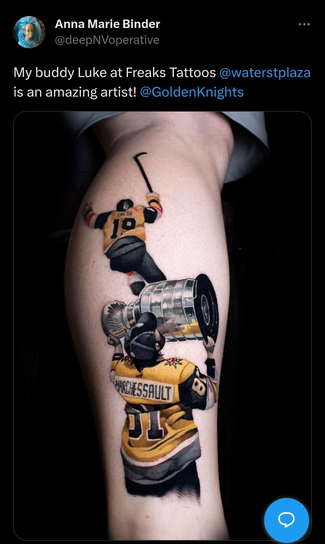 Money well spent by icemandabs710 Pacific DivisionVegas Golden KnightsWestern Conference Prev Post Stanley Cup tree art in my neighborhood September 7, 2023 Next Post NAHA 2022-23 Western Conf. Quarterfinal G3 – Portland Lumberjacks @ Cleveland Barons (CLE leads 2-0) September 7, 2023 3 Comments Steve_Hunts96 2 years ago  Markel100 2 years ago Nice ink not at tatoo expert how is thst gonna age YugeFrigginGoy 2 years ago Alright but why photoshop it? I’m sure it looks amazing in proper lighting and not touched upWrite A CommentYou must be logged in to post a comment.
