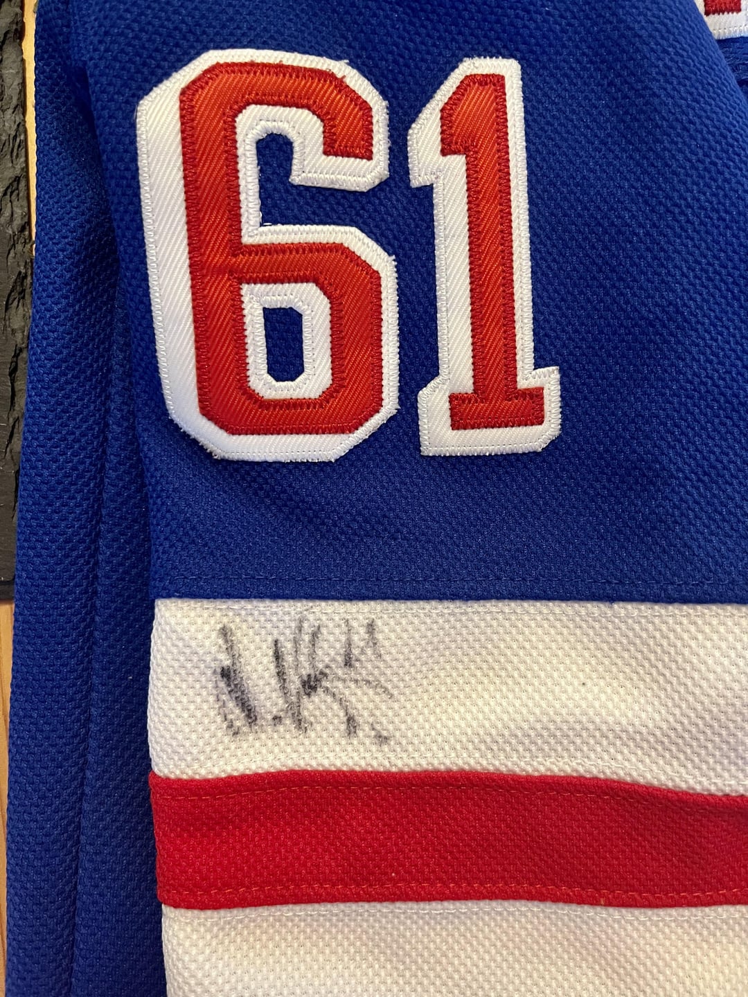 Signature could be authentic, Rick Nash, #61 for NYR from 2012-18. He was a pretty big star who never quite reached what we all thought his potential was in NY,