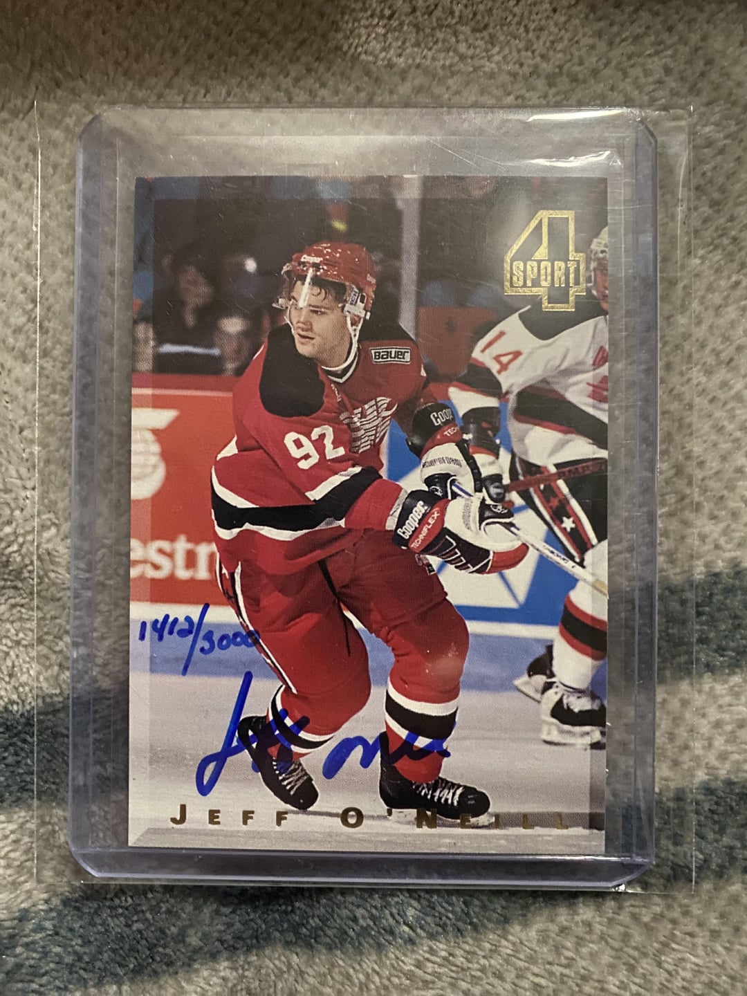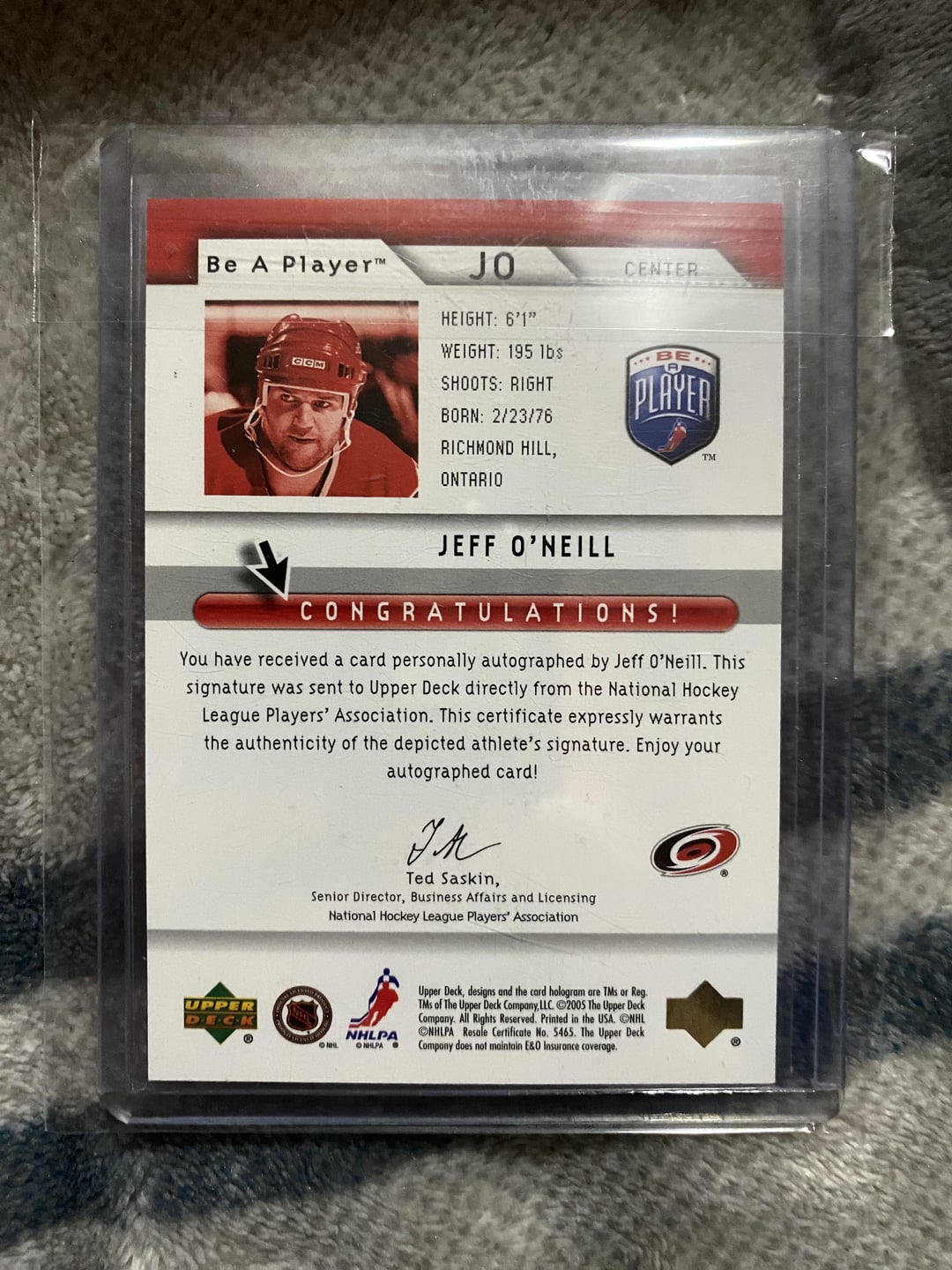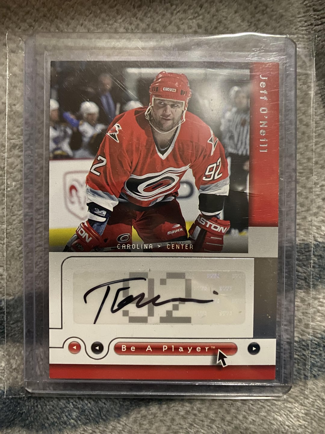 cmorse0 2 years ago Yes those are the same guys. Jeff O’Neill is who that is. The reason the signatures are different is because one is when he was playing juniors. Junior players are between 16-20 years old so his signature probably changed as he got older