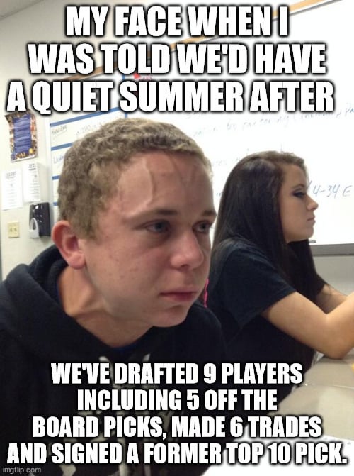 I’m not following everyone, cause they all suck, but I feel like we were probably the most active team this off-season and a lot of the moves look like wins at face value