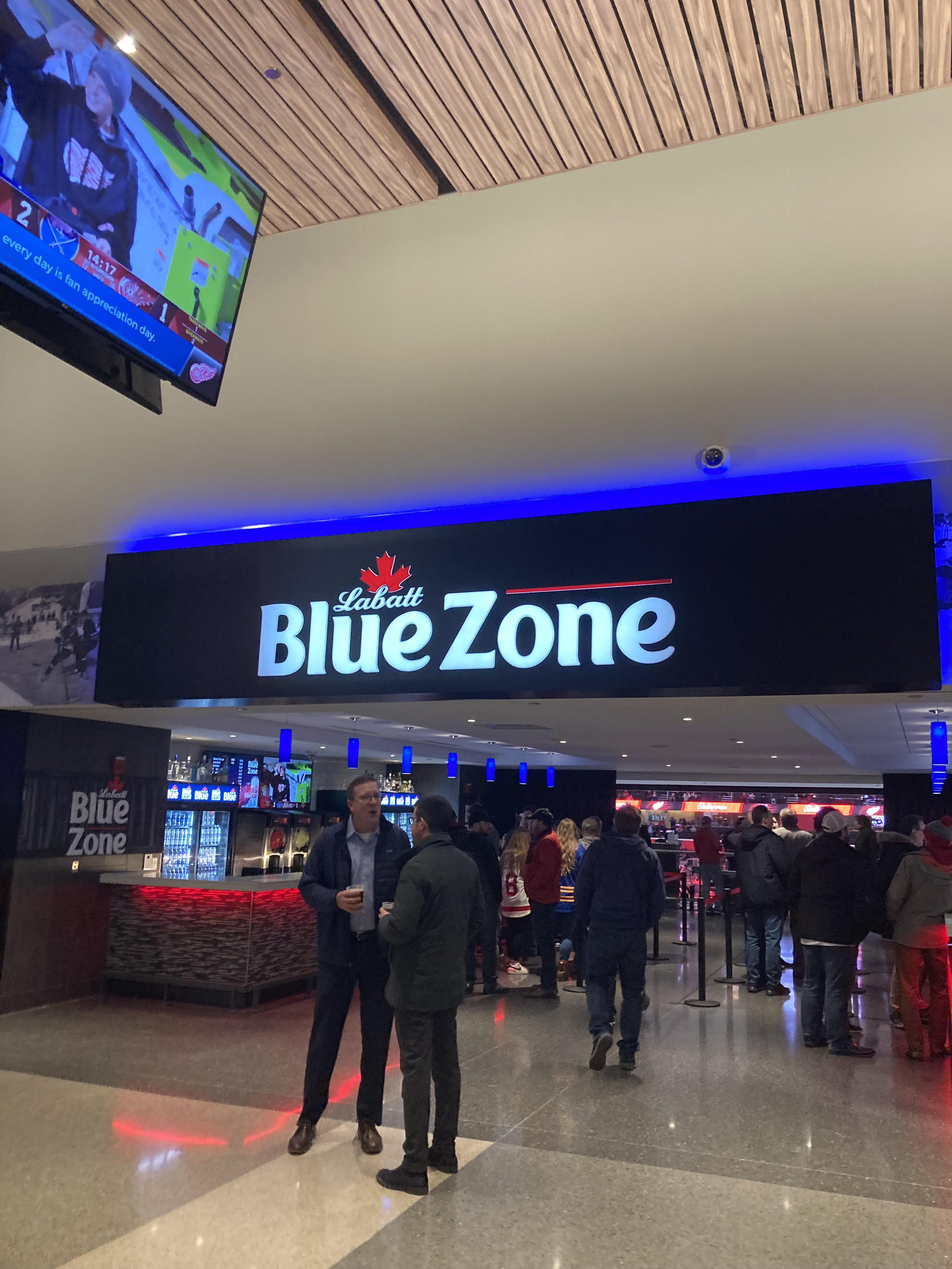 It is on the lower level right behind where the cameras are. So like center ice on the woodward side.