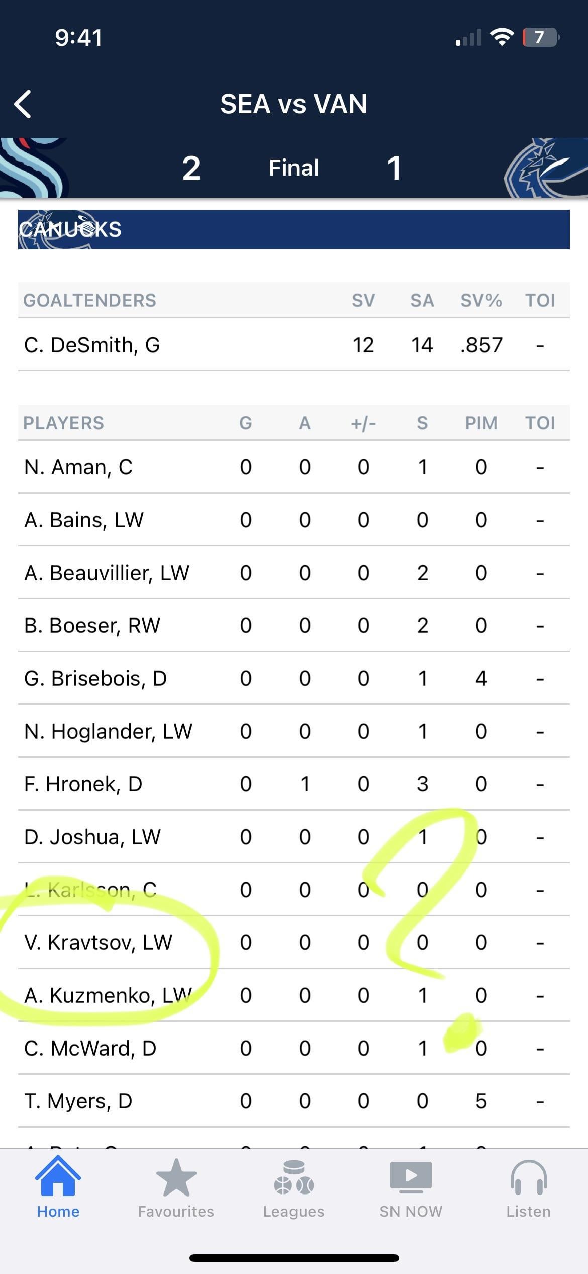 Are they manually updating the stats instead of using some NHL API? lol some intern probably copying and pasting some dataset that still has kravstov on it