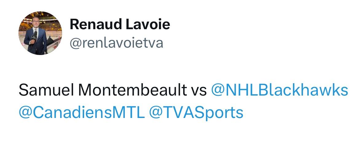 Samuel Montembeault will play the Blackhawksby StopOffsideReviews Atlantic DivisionCanadiens de MontréalEastern Conferencemontreal canadiens Prev Post The Flyers are 1-0 in the Gritty Mailbox era. October 13, 2023 Next Post They did it!!!! October 13, 2023 5 Comments thomas_bombadill 2 years ago Makes sense, Allen let in some softies again Han_Solo_18 2 years ago Glad to see him at the home opener Riskar 2 years ago He should have played the Leafs as well. Allen was horrible. Guess it’s good for the tank to keep Allen? WirelessWerewolf 2 years ago Great username OP Burgergold 2 years ago Vs Bedard you meanWrite A CommentYou must be logged in to post a comment.