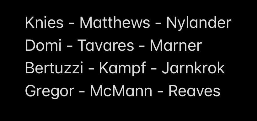 Nylander and Tavares are too good to split up but Knies on the top line is beautiful