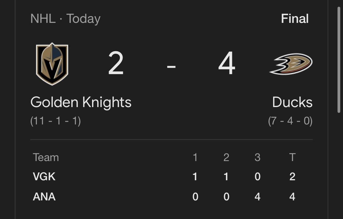 I couldn’t be prouder for my previously favorite team the ducks definitely deserve this win they served Vegas their first true defeat this year good on them, now they just need to bring back their old logo completely and all will be well
