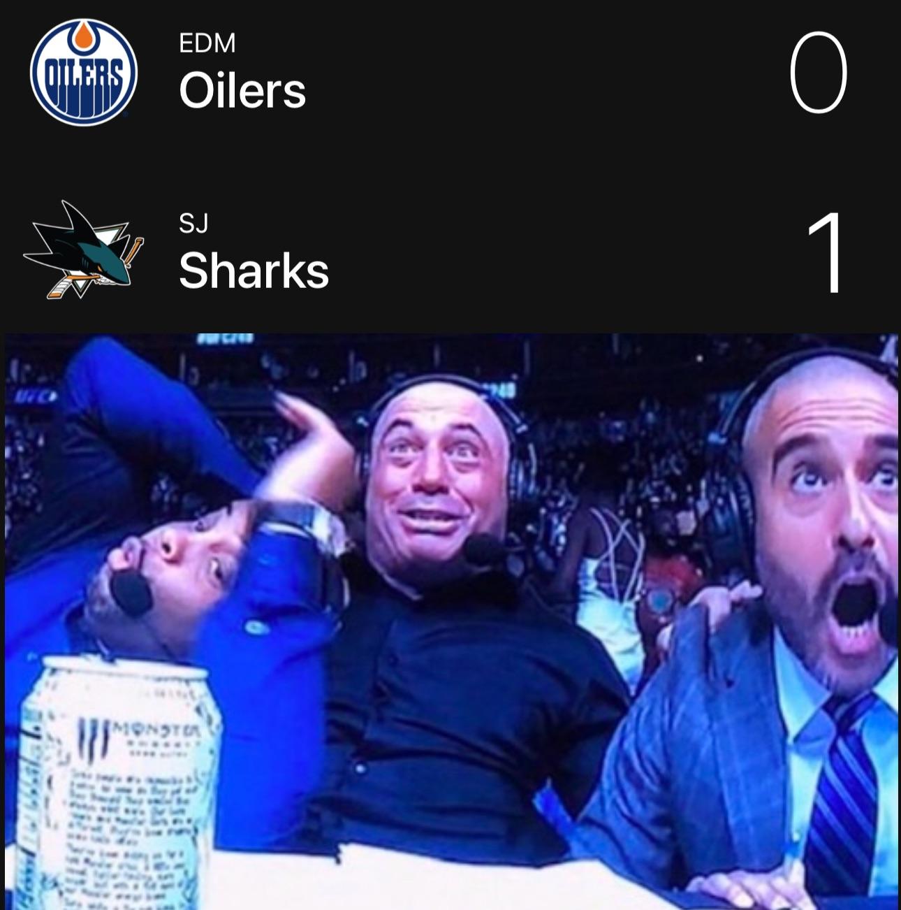 Sharks, 3 goals on 16 shots. Oilers, 1 goal on 26 shots.