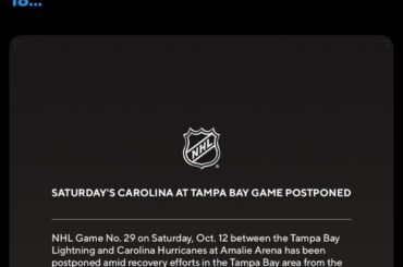 The Lightning’s home opener Saturday has been postponed due to the effects of Hurricane Milton by MrSCR23