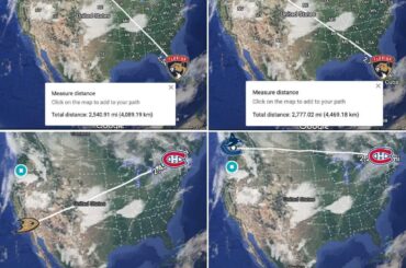 The Stanley Cup Finals have the furthest geographic spread between teams, with 2,541 miles between Edmonton and Sunrise. The furthest…